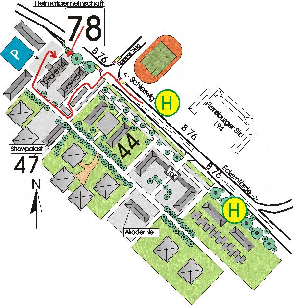 Sie erreichen uns über die B 76 (Flensburger Straße), auf Carlshöhe an der Ampel links abbiegen, der Straße vor dem Lavida folgen bis zur Allee. Dort rechts abbiegen und am Ende der Straße rechts auf dem Parkplatz vor der Nummer 78 halten. Unsere Räume befinden sich im Erdgeschoss. Es gibt einen behindertengerechten Zutritt über die Doppeltür nahe am Außen-Fahrstuhl.